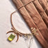 Crafted with meticulous attention to detail, the necklace features a delicate chain that gently embraces the neck, ensuring a comfortable and graceful fit. The focal point of this stunning piece is a series of luminous lime-green gemstones, expertly arranged in a harmonious composition.
